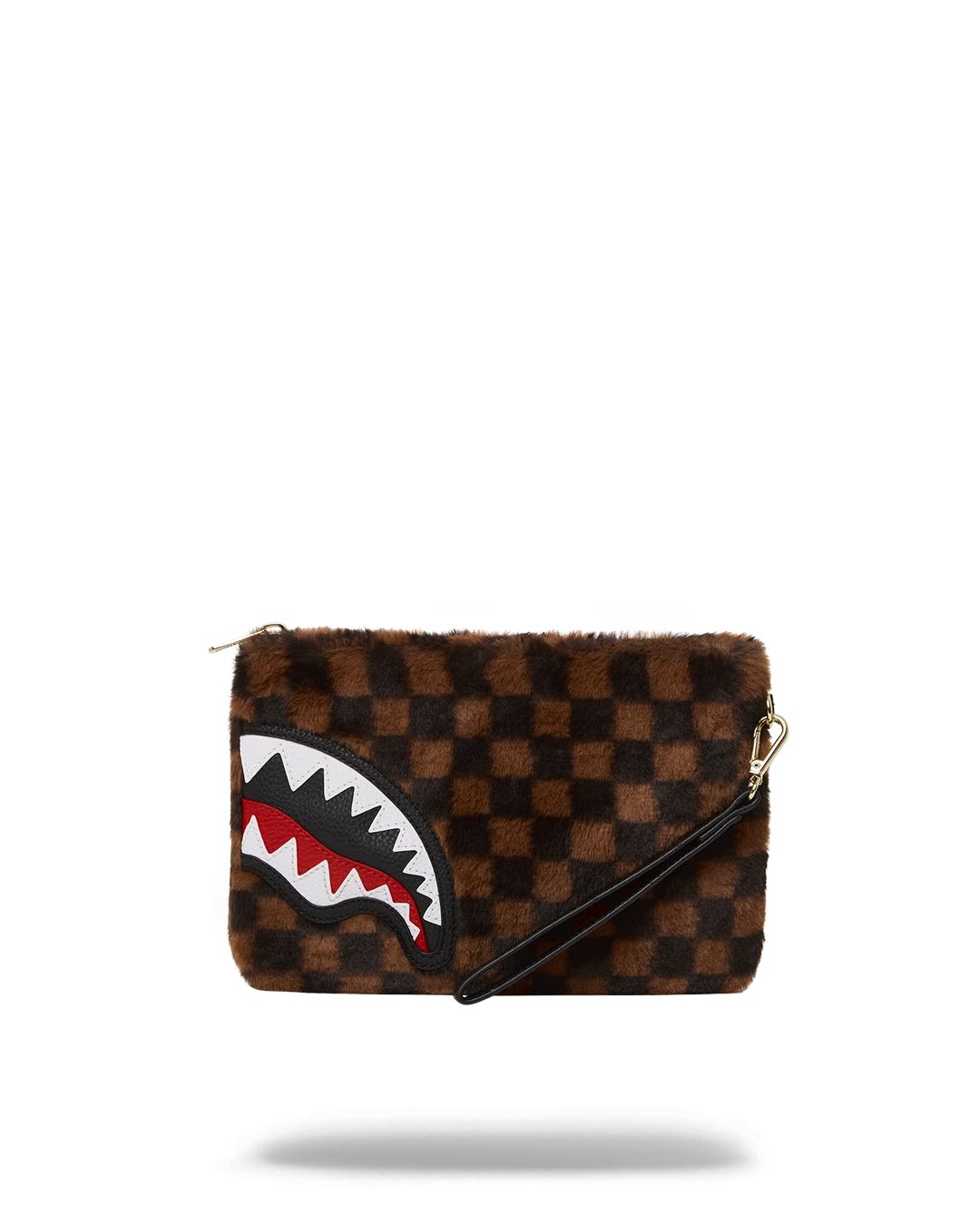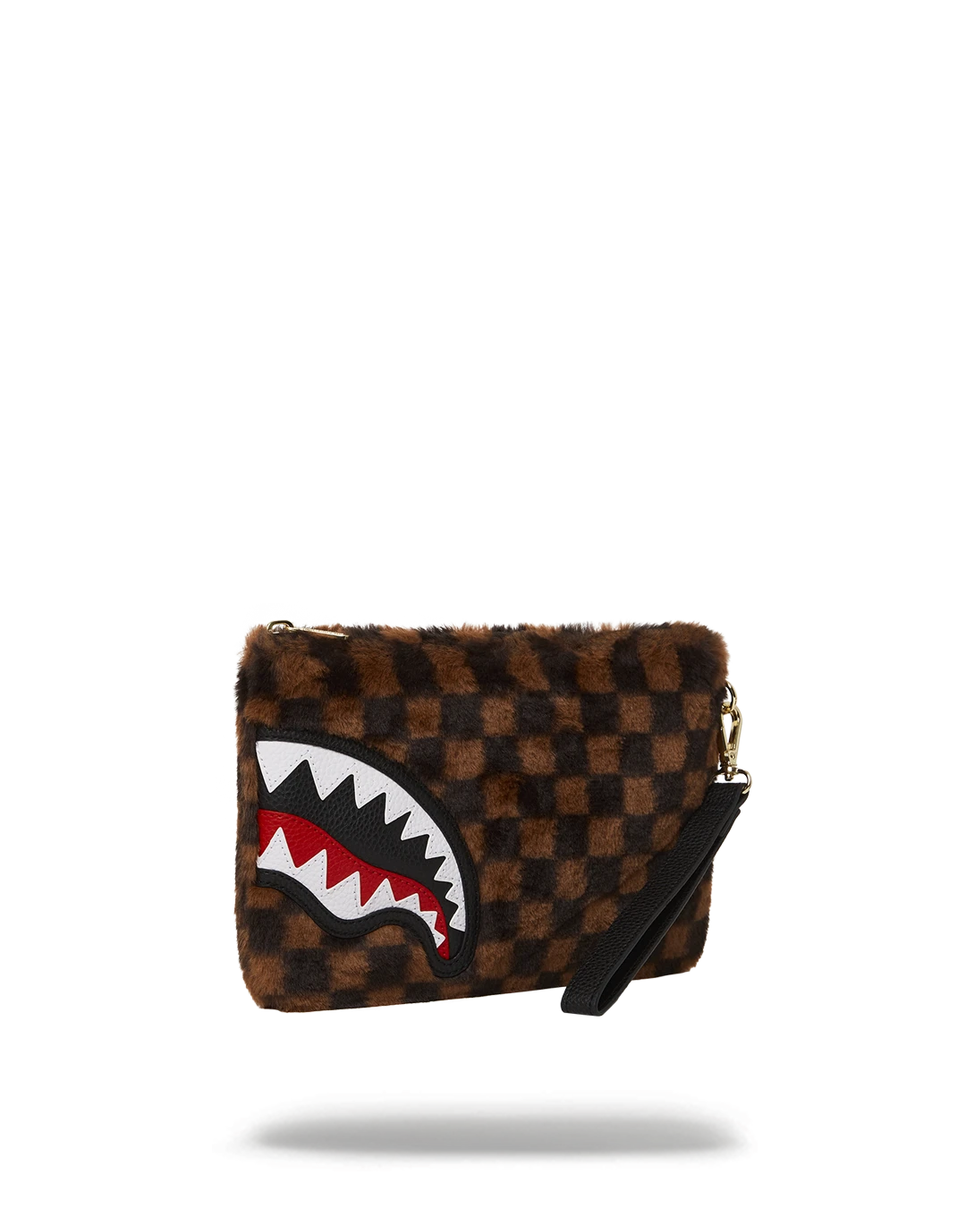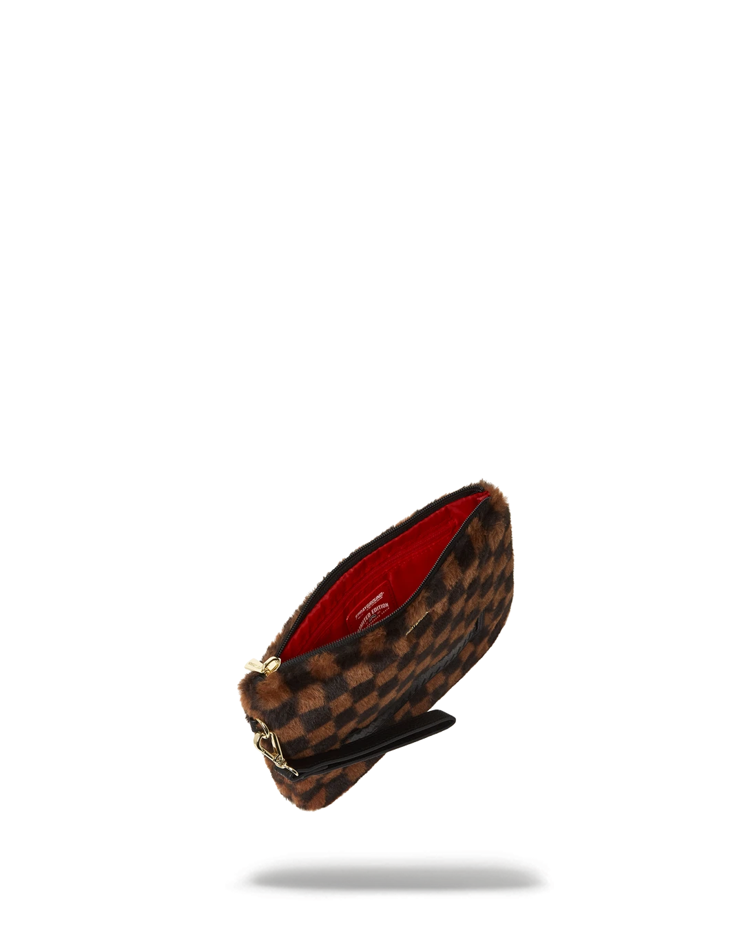Pouch with removable wristlet strap, Handle on front panel, Zip Closure, secret stash pocket on side seam