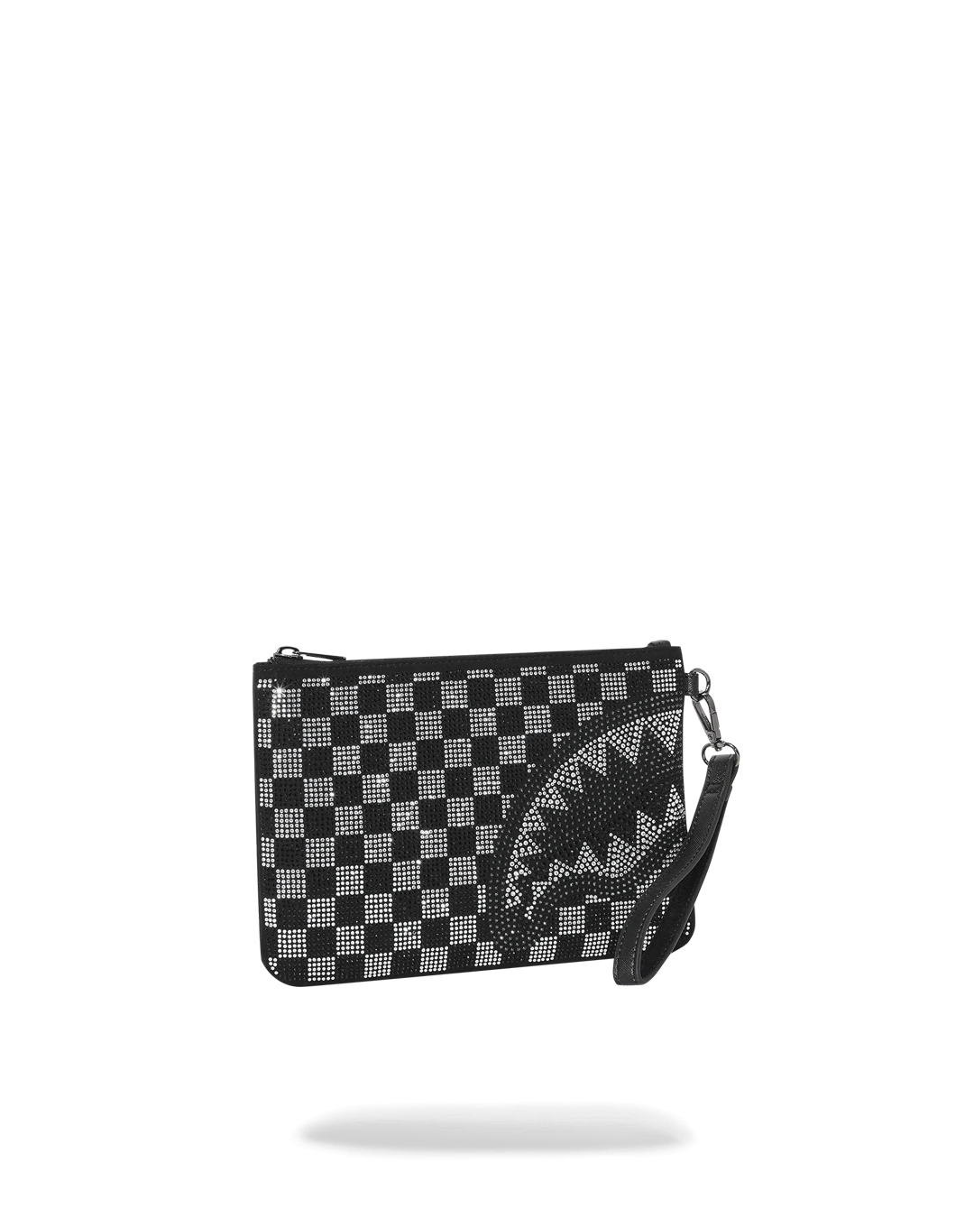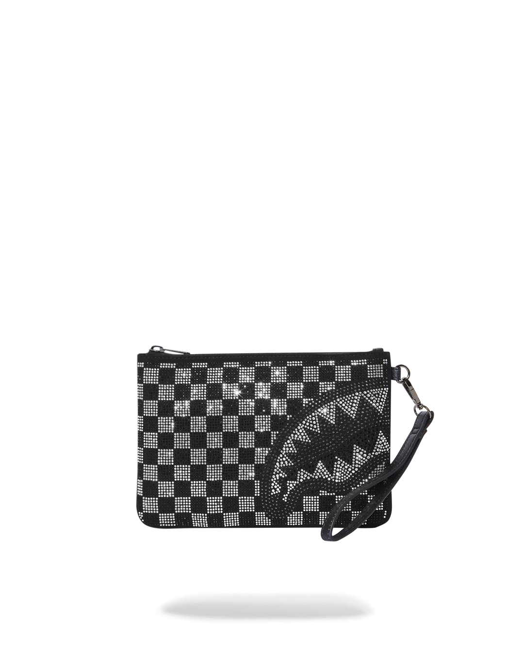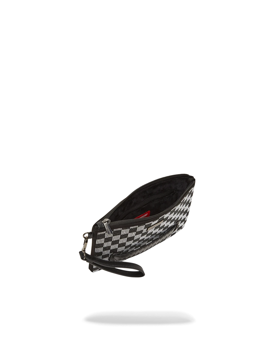 Pouch with removable wristlet strap, Handle on front panel, Zip Closure, secret stash pocket on side seam