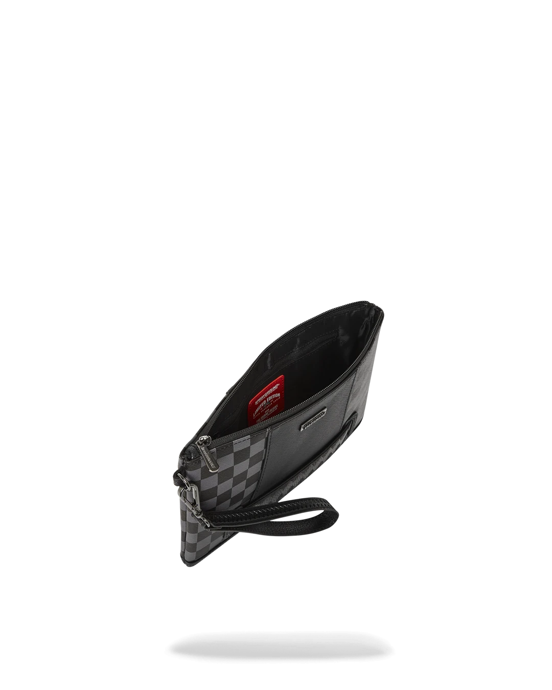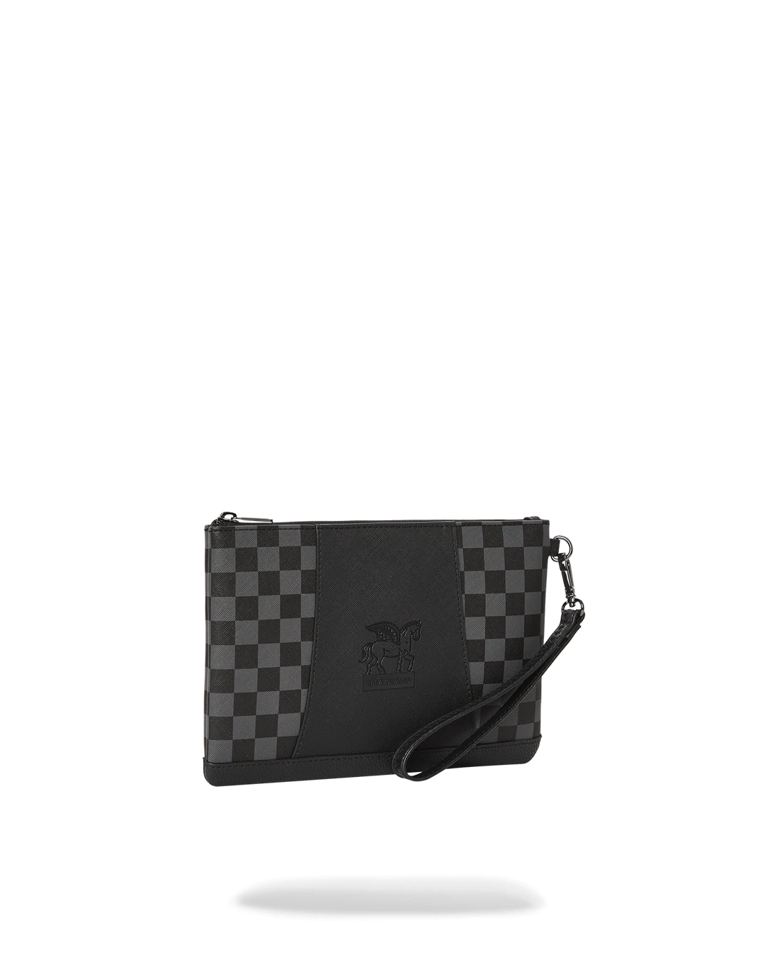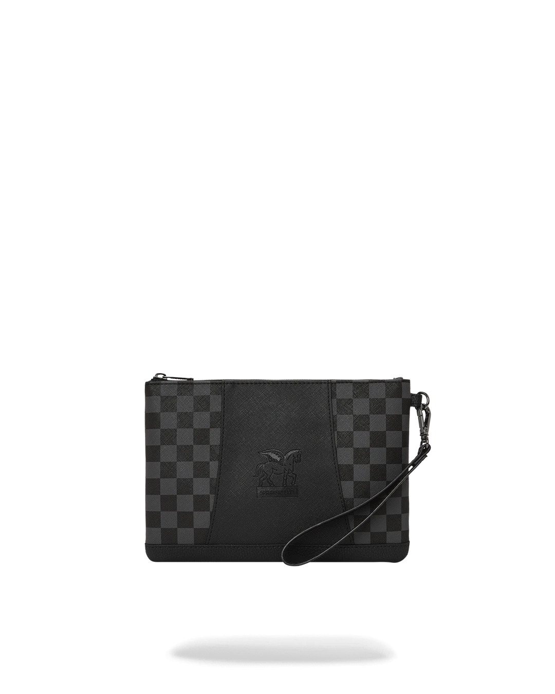 Pouch with removable wristlet strap, Handle on front panel, Zip Closure, secret stash pocket on side seam