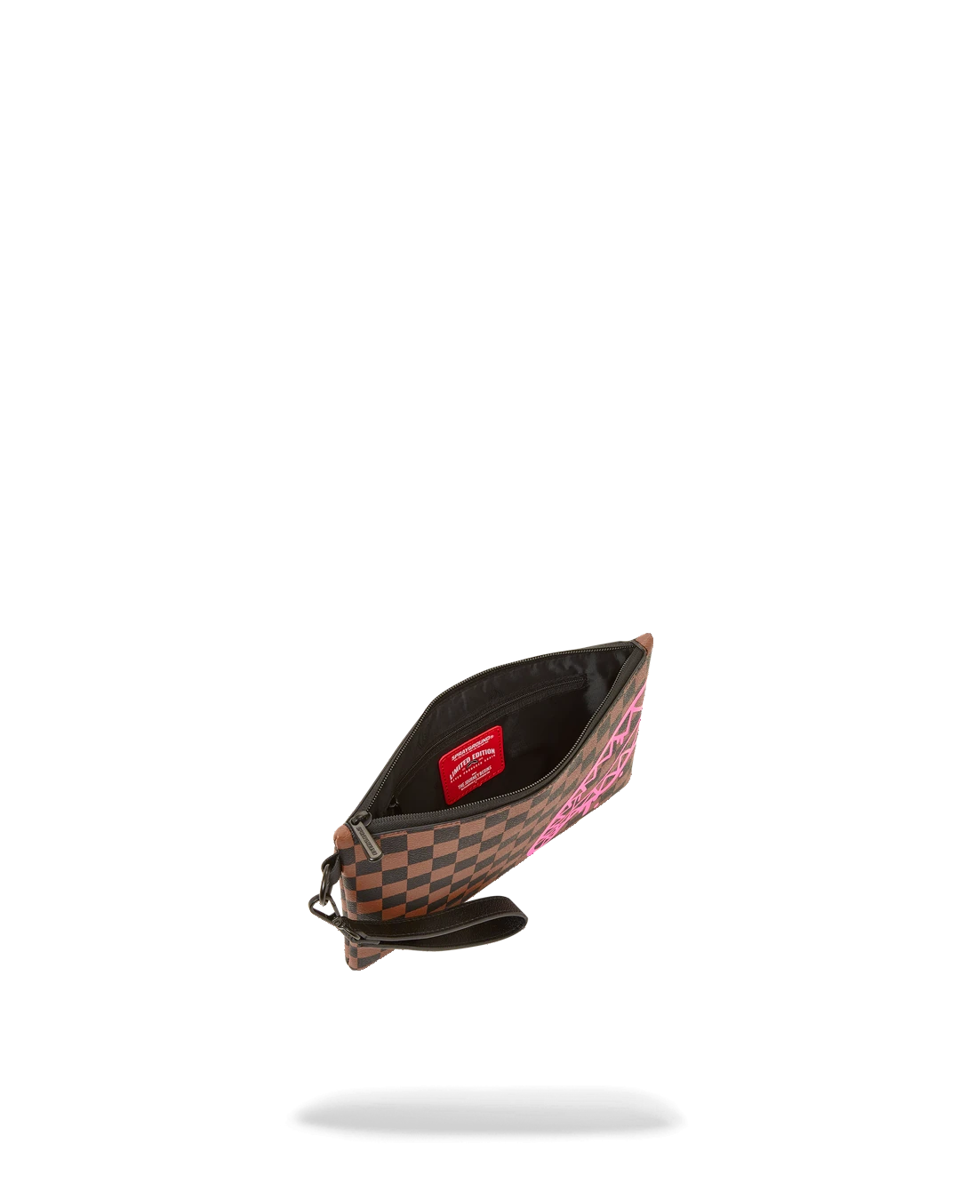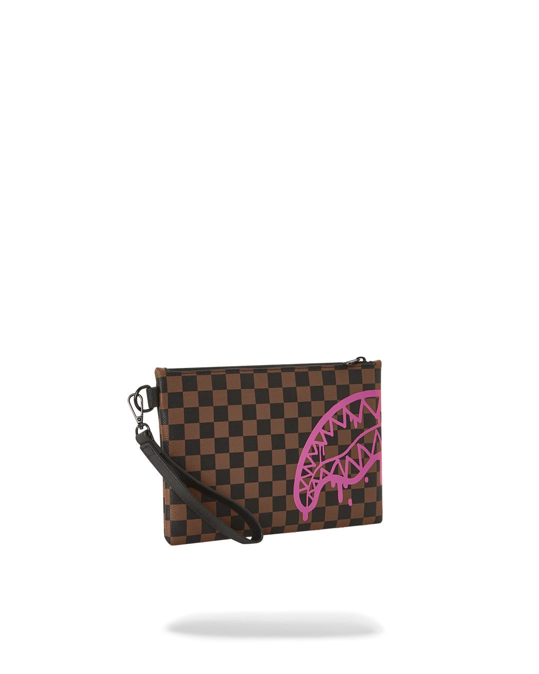 Pouch with removable wristlet strap, Handle on front panel, Zip Closure, secret stash pocket on side seam