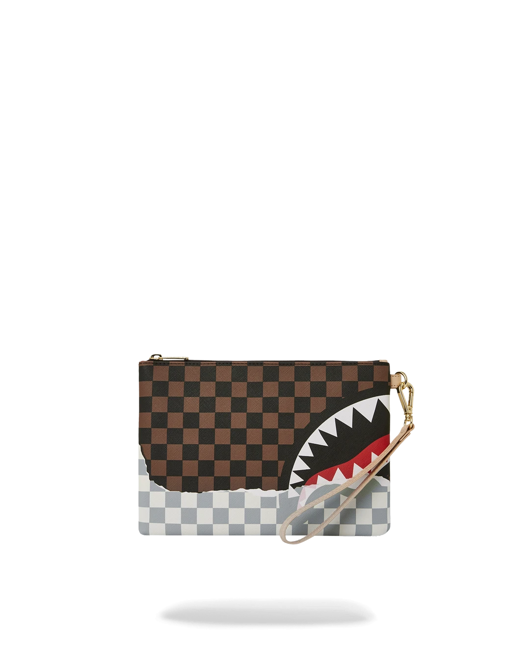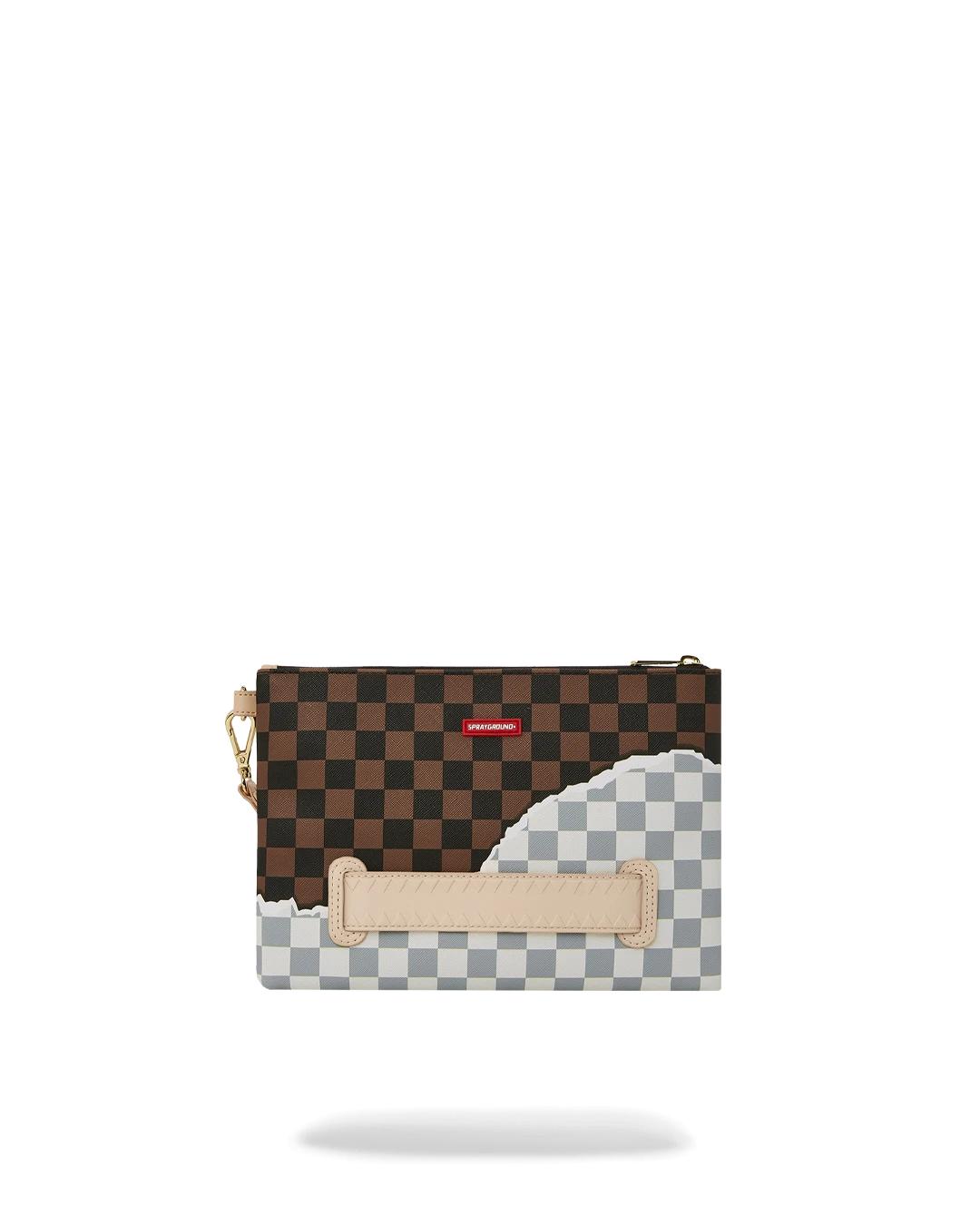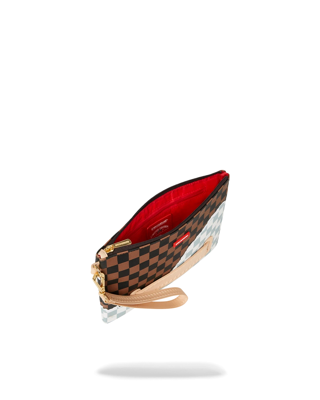 Pouch with removable wristlet strap, Handle on front panel, Zip Closure, secret stash pocket on side seam